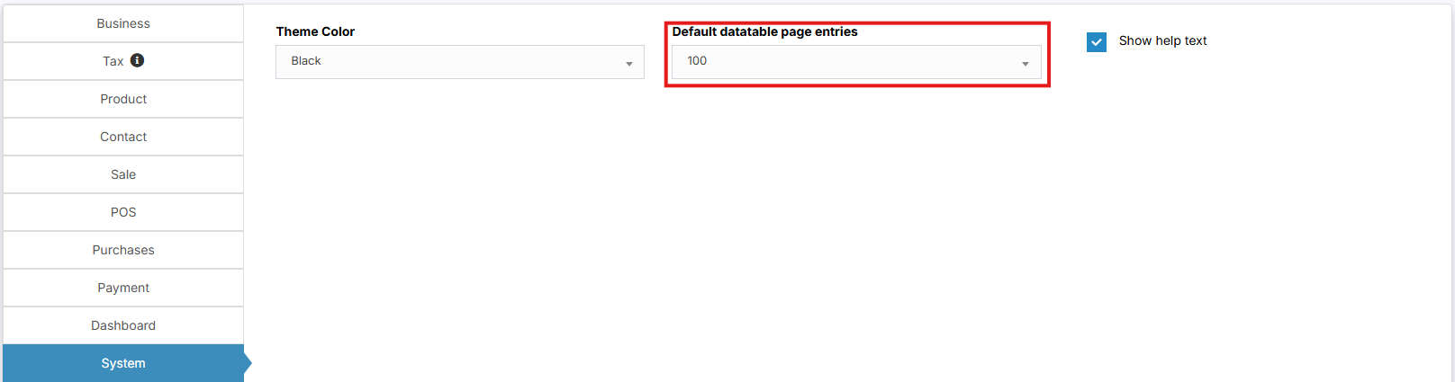 The default number of entries in the data tables can be selected in Business Settings -> System.