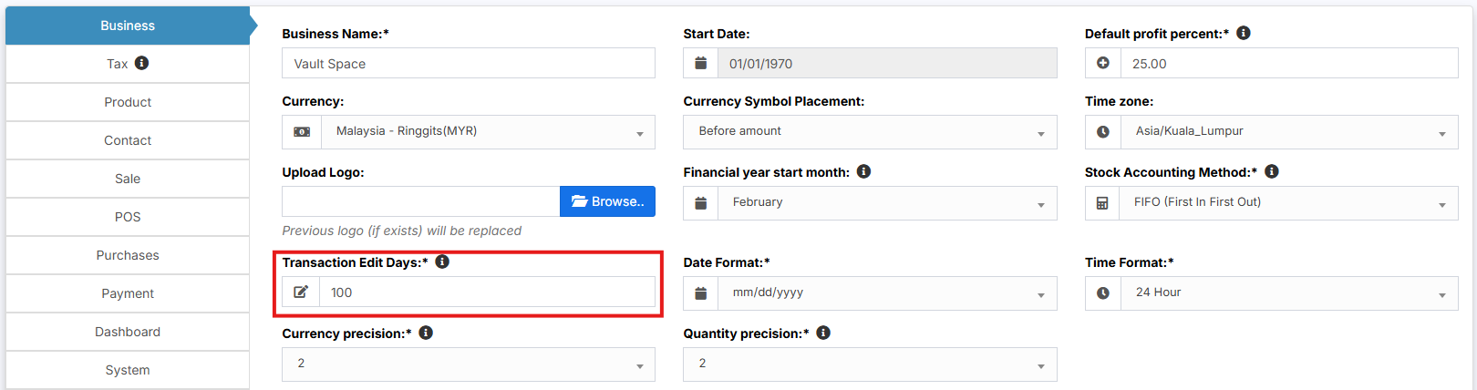 In order to increase the limit for editing the transaction, set the number of days in the business settings.