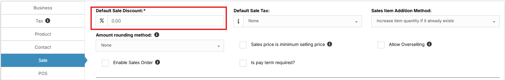 - Business Setting > Sale > Default Sale Discount: The default discount will be used for all sales in POS & Add sales screen.