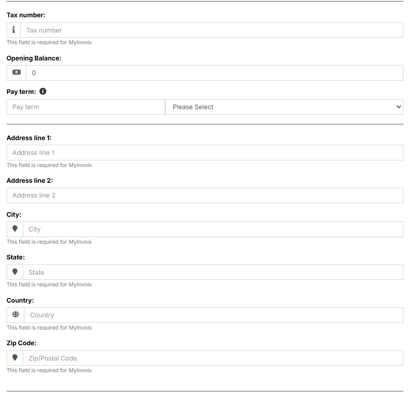 - Pay Terms: This will help the system to notify you of any pending payments for suppliers & customers. You can specify pay term in either days or months.
