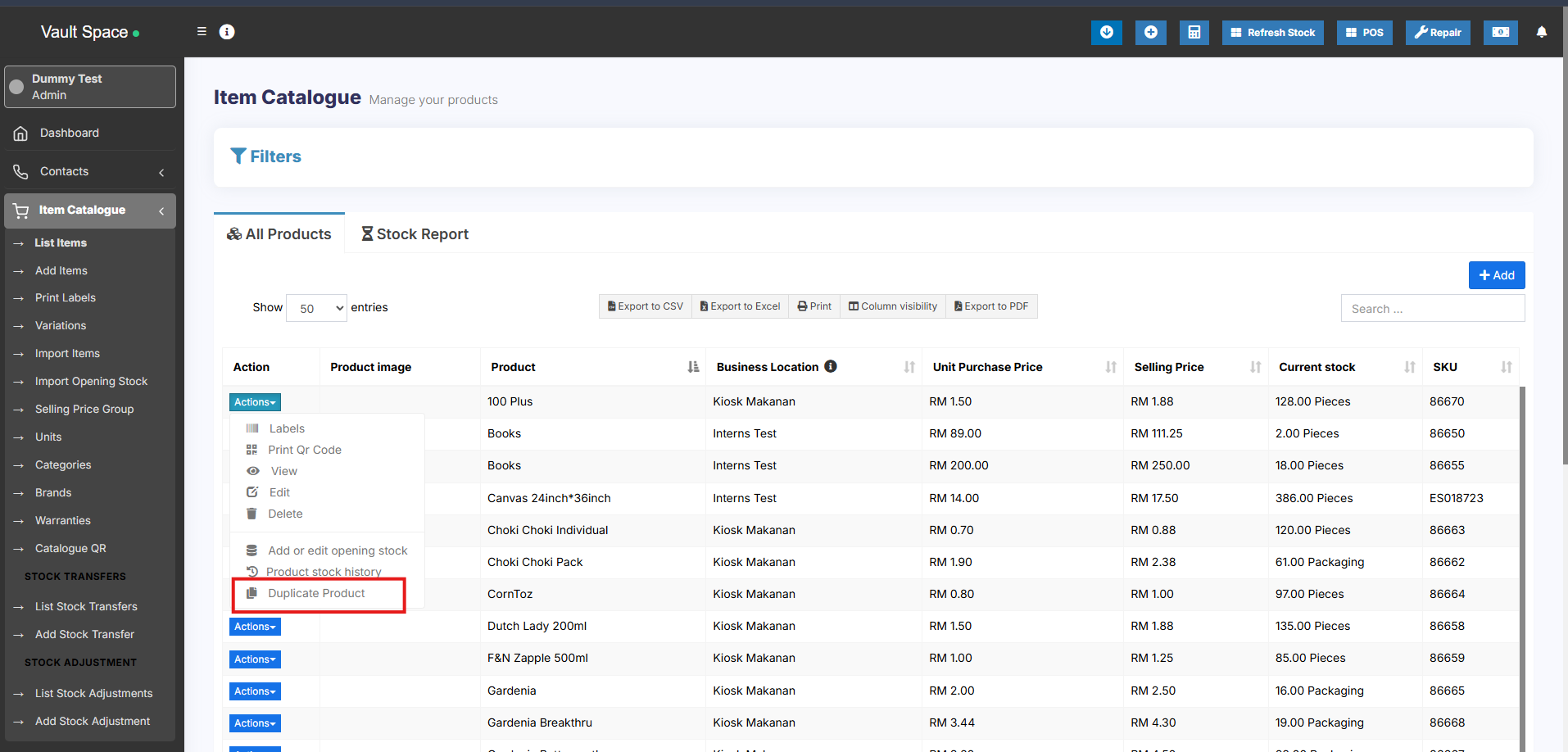 Duplicate Products helps you to easily create a new product with the same data as another product, this helps you save repetitive entering of data and ultimately saves time by making the product entry process faster.