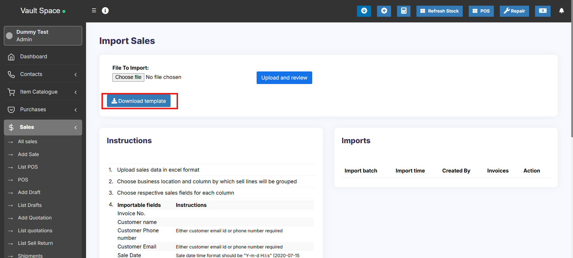 Once downloaded, open it and add the required details. While adding the details follow the instructions mentioned on the import sale page itself.
