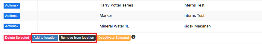 - Similarly to remove products from a location, click in Remove from Location button and select location to be removed.
