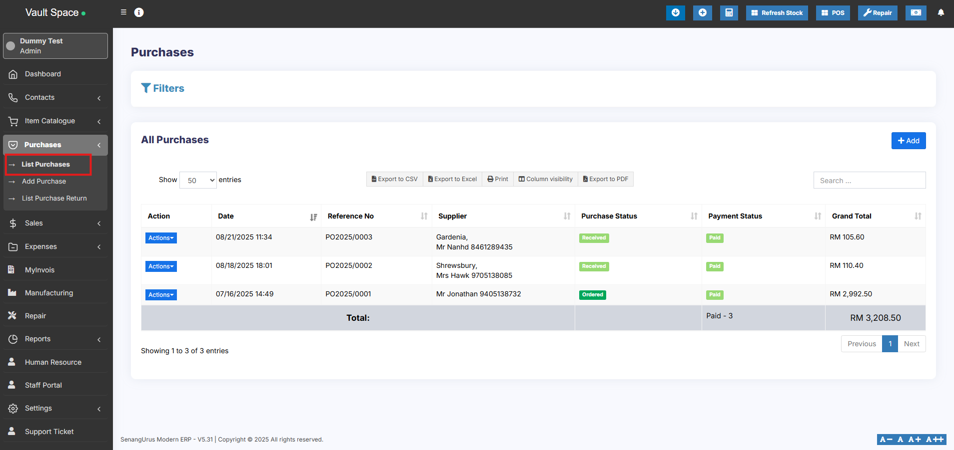 You can Print Labels for your purchase by Clicking “Print Labels” in List Purchases screen.