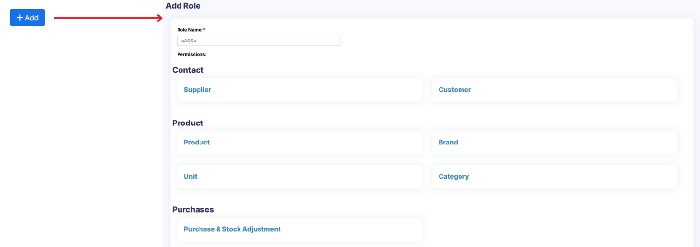 Cashier have permission to only POS section. - You can create a role by clicking on Add button -> Giving a