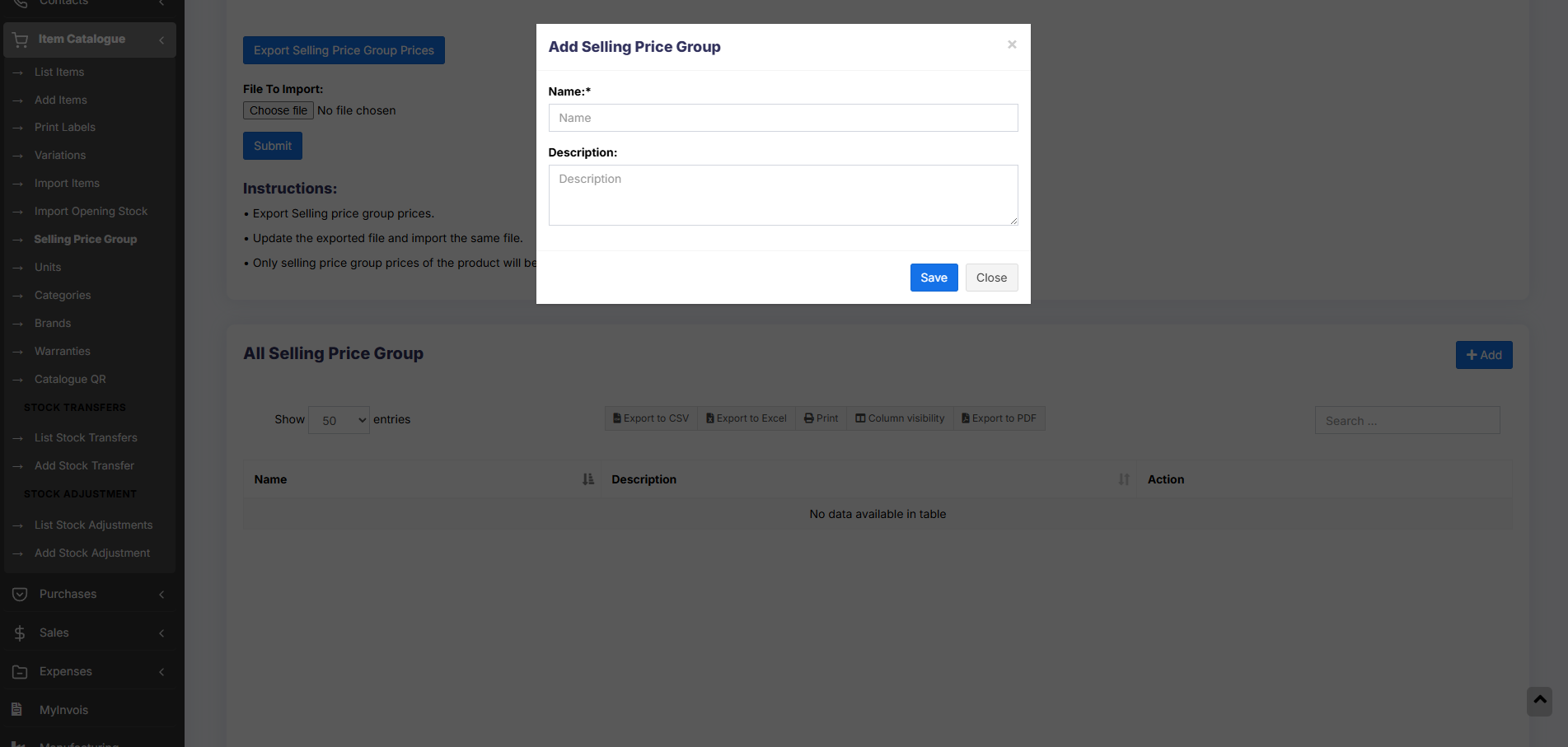 - Click on “Add” button to add a new price group. For example Retail price or WholeSale price or Bulk Purchase price or Location 1 price etc as per your wish.