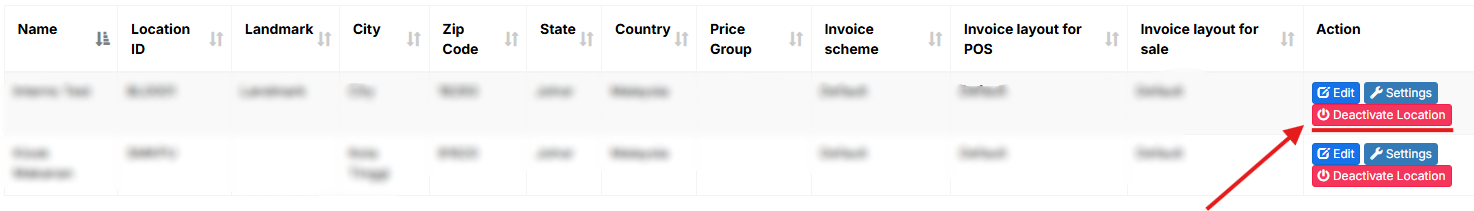 - You must keep at least 1 business location non-disabled. If all business location is disabled then the application will throw errors.