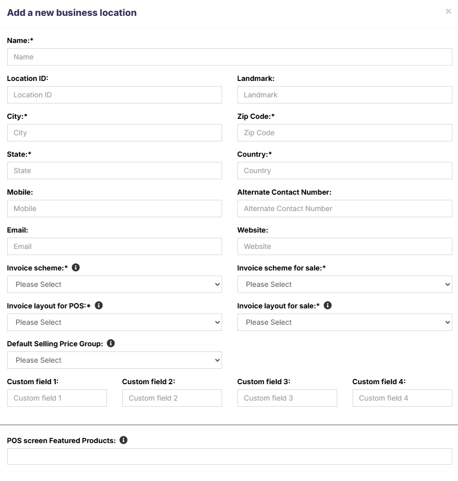 Invoice Layout: If you wish to have a different invoice layout for the location then you should create an invoice layout before creating a new location. (Read More)