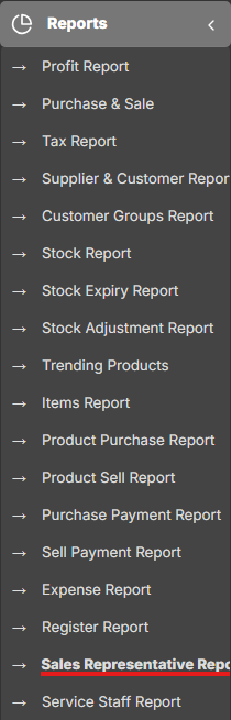 - Calculate the commission from the sales representative report and after paying the amount add it as an expense in Add Expense menu.