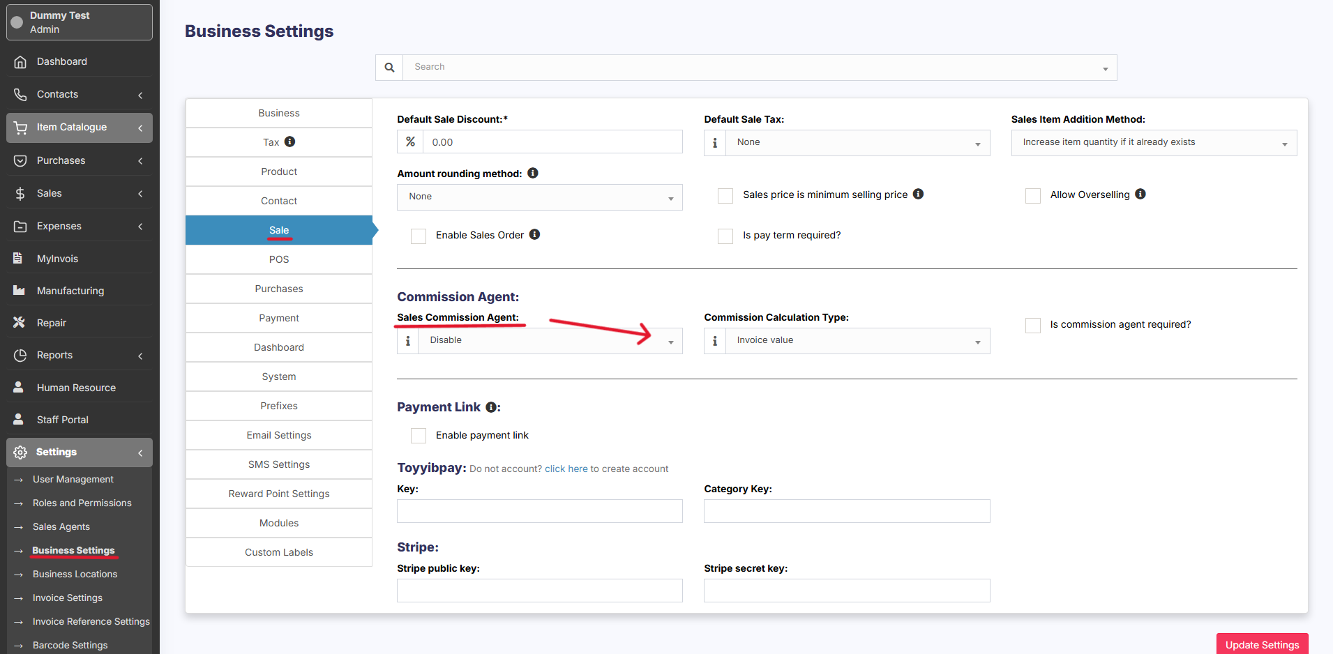 By default Commission Agent is Disabled. You can enable it from Settings -> Business Settings -> Sale -> Sales Commission Agent drop-down.