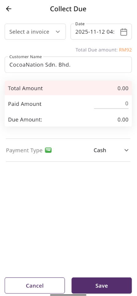In the Due List section, when you click on a user you will be taken to the page below. If you are logged in under an active branch, you can only collect dues from the selected invoices. The invoices will be filtered according to your branch, and the balance will be updated from the branch to which the invoice belongs. If you are not under any branch, you can collect dues without selecting invoices. In this case, the due will be adjusted from the shop's overall balance. If you collect dues along with invoices, the balance of the branch to which each invoice belongs will be updated accordingly.