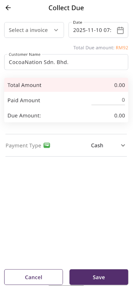 Here, you can view the Due list. Additionally, you can collect the due amounts from this page.