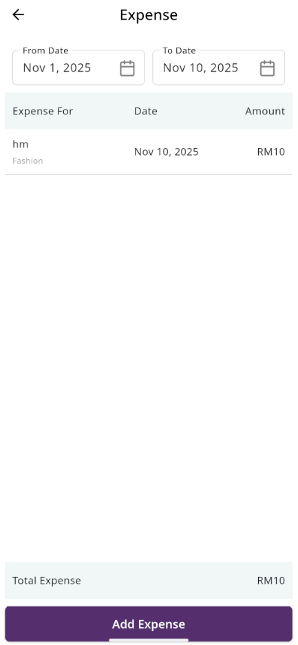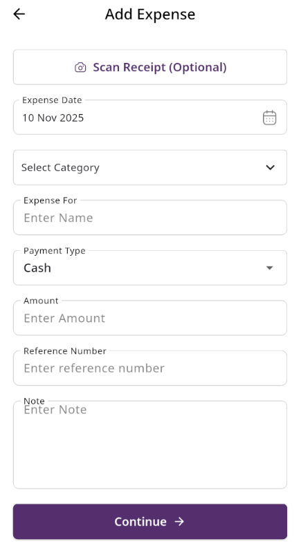 You can create an expense by filling out the required fields. Here You can also select category and payment type.