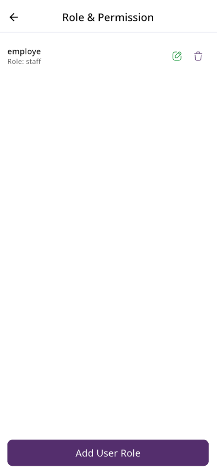 Here, you can view a list of roles and permissions. The list displays name along with the number of features accessible to users. From here, you can also add a new user role, edit an existing role, or delete one.