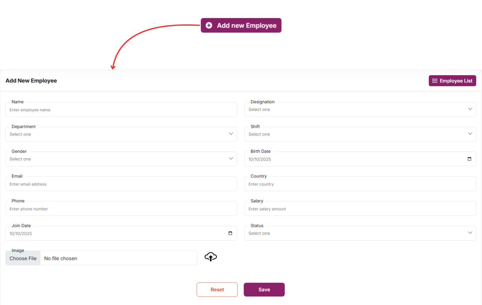 Here you can create a Employee by filling the following form.
