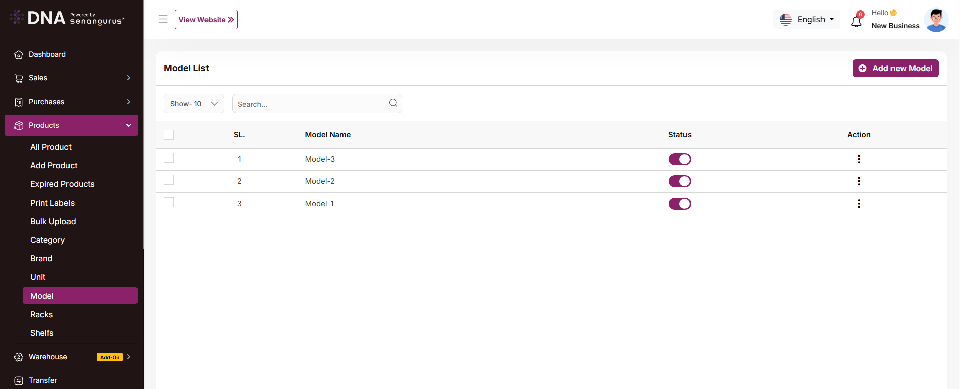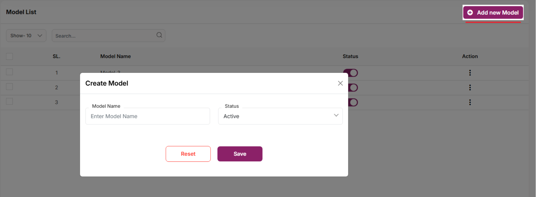 You can view the model list with available filtering options. Furthermore, you have the ability to edit, delete, or use the multi-delete function.