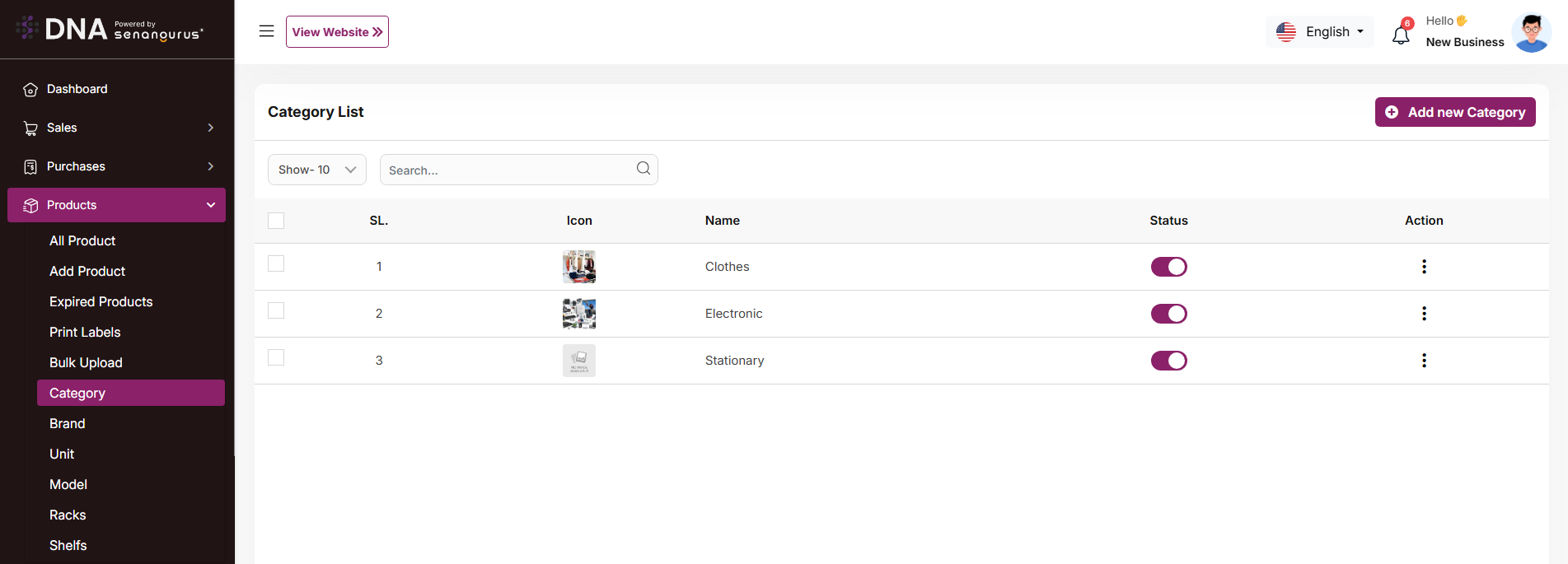 You can view the Category list with available filtering options. Furthermore, you have the ability to edit, delete, or use the multi-delete function.
