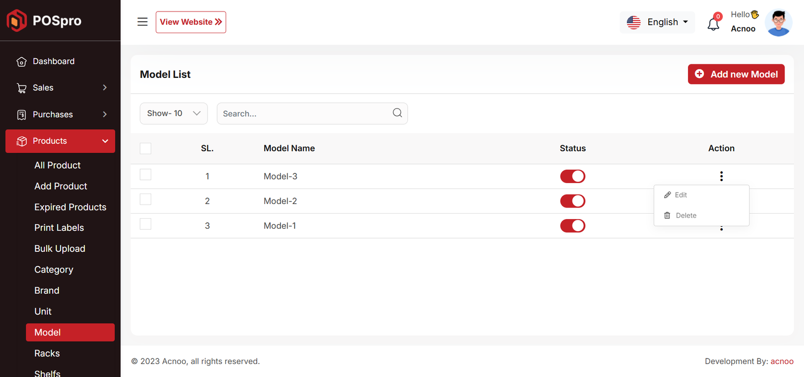 You can view the model list with available filtering options. Furthermore, you have the ability to edit, delete, or use the multi-delete function.