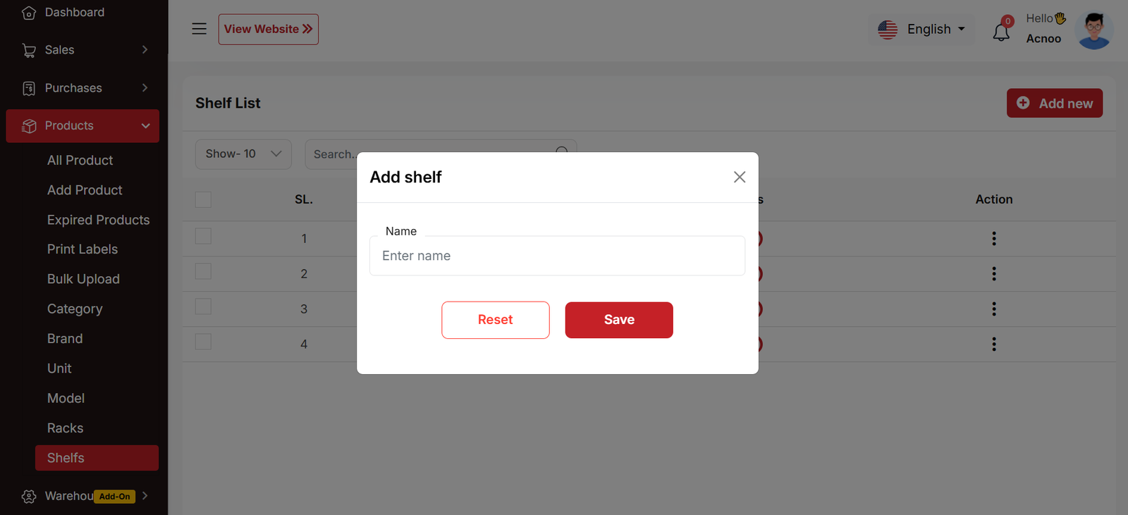 You can view the shelf list with available filtering options. Furthermore, you have the ability to edit, delete, or use the multi-delete function.