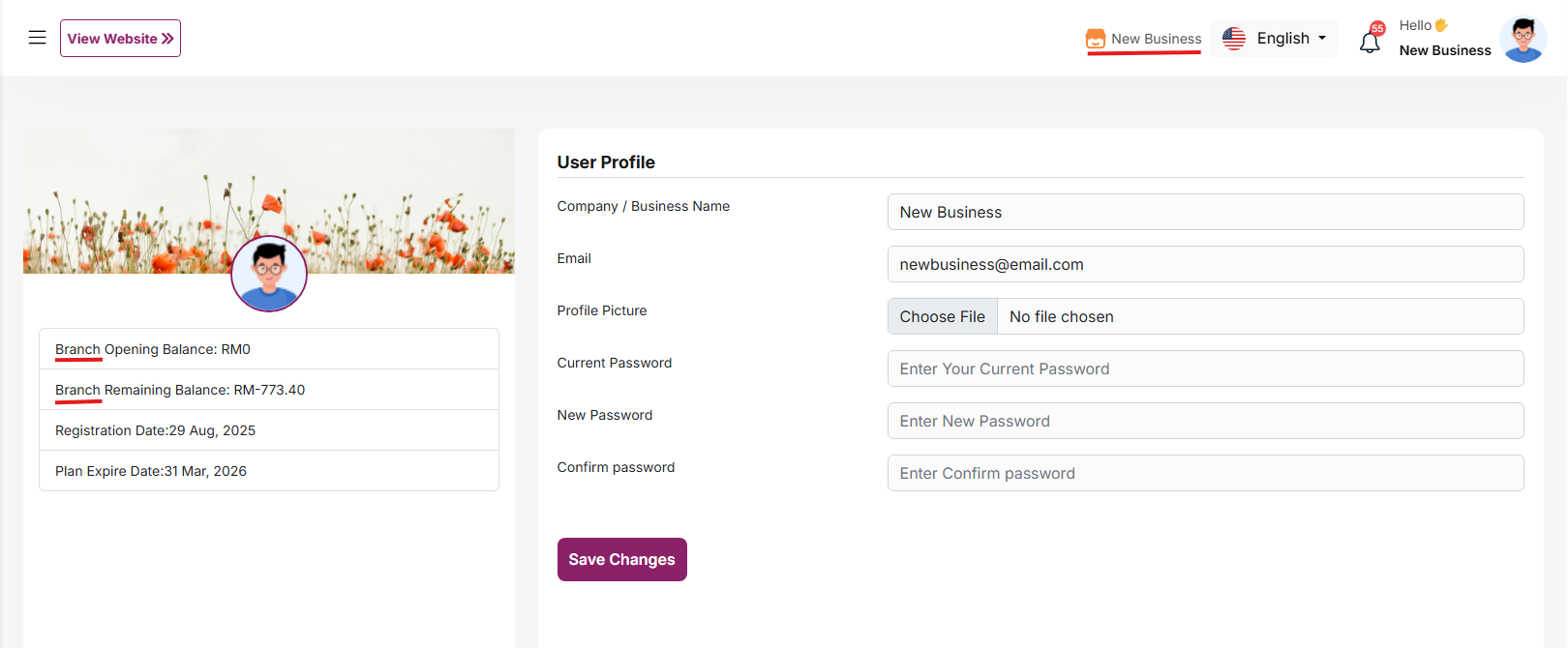 If you are logged in to a branch, you will see the Branch Opening/Remaining Balance. Otherwise, the Shop Opening/Remaining Balance will be displayed