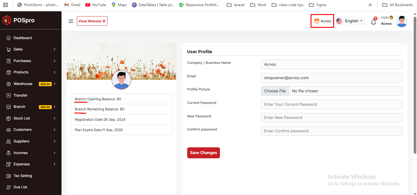 If you are logged in to a branch, you will see the Branch Opening/Remaining Balance. Otherwise, the Shop Opening/Remaining Balance will be displayed