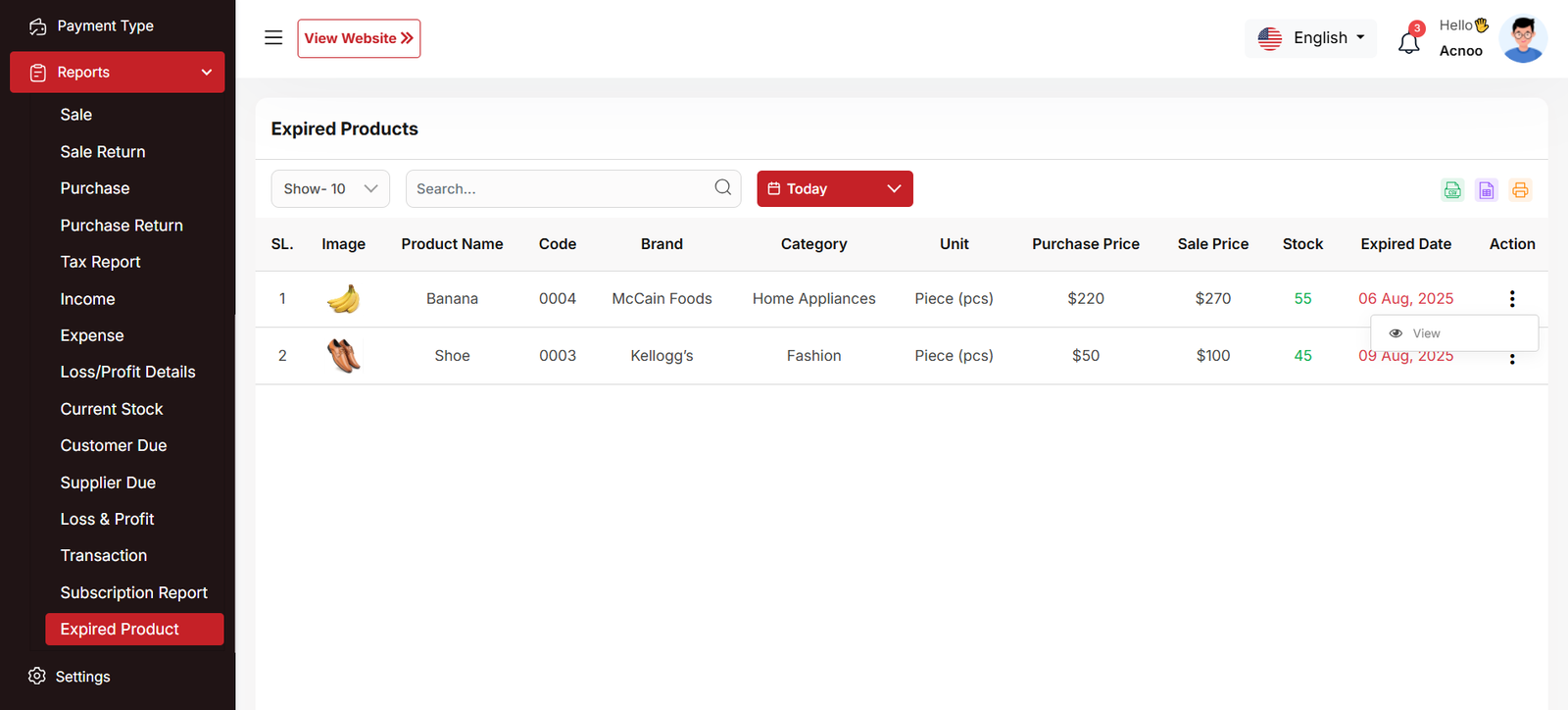 Expired Product Report