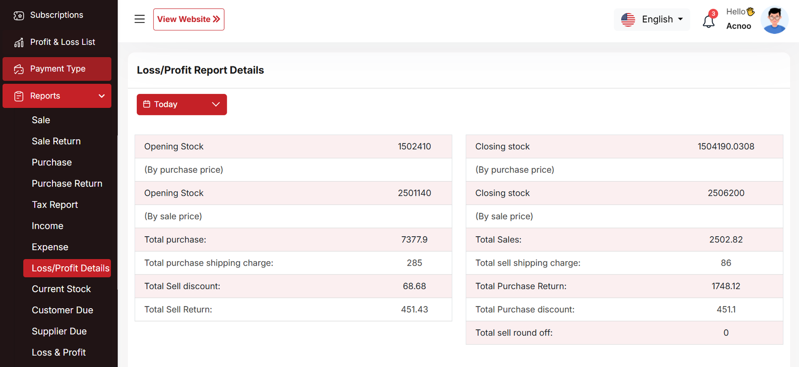 Loss & Profit Report