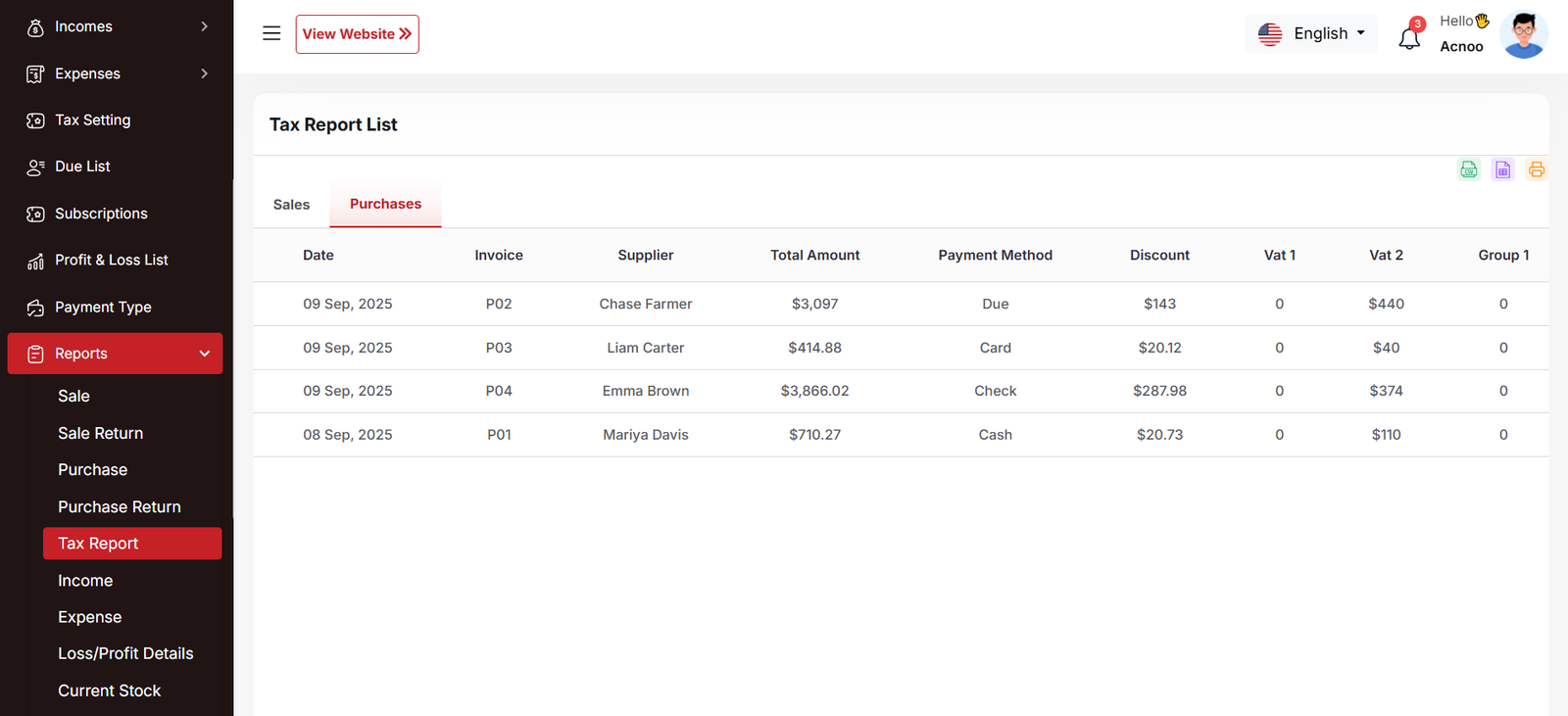 Tax Report (Purchases)
