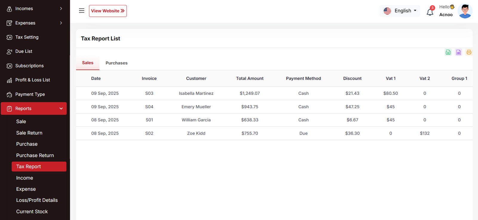 Tax Report (Sales)
